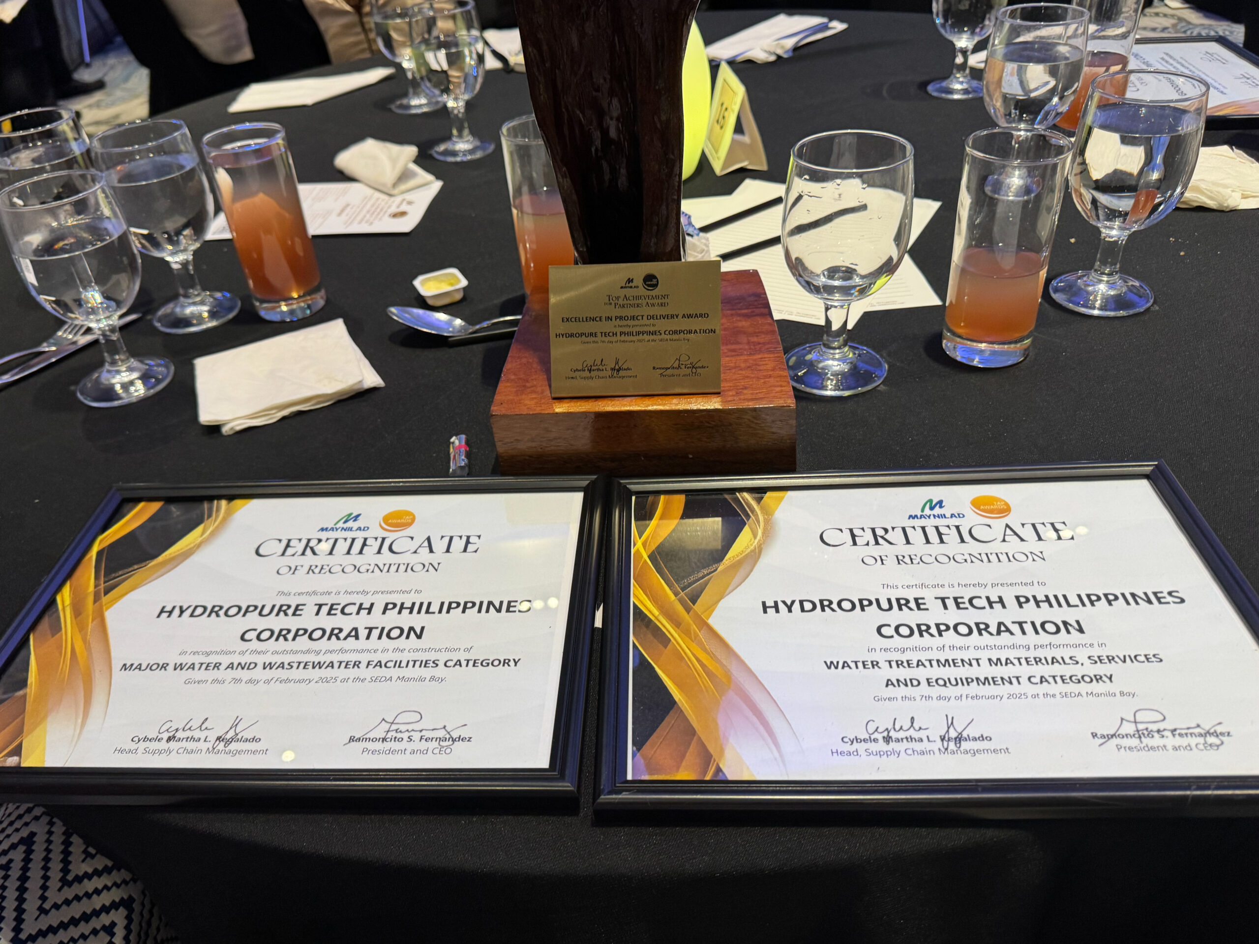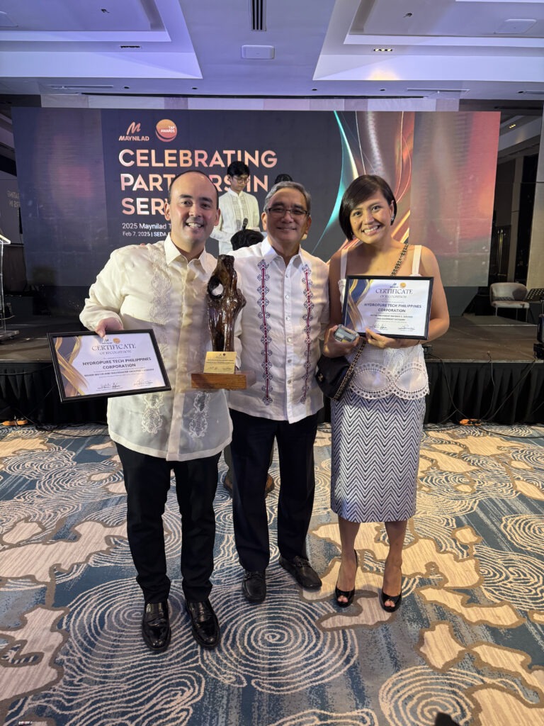 This milestone by Hydropure Tech Philippines Corporation strengthens their partnership with Maynilad and continues building on their already reliable and outstanding delivery, technology and water treatment solutions. This achievement is aligned with Maynilad President & CEO Ramon Fernandez’s message that theyare committed to finding partners who are aligned with the same values of protecting public welfare while complying with Maynilad’s business standards. The annual TAP Awards is their way of acknowledging their partners’ efforts and contributions. This achievement by Hydropure Tech Philippines Corporation is evidence of their hard work and determination, adhering to Maynilad Water System Inc.’s mission and vision.